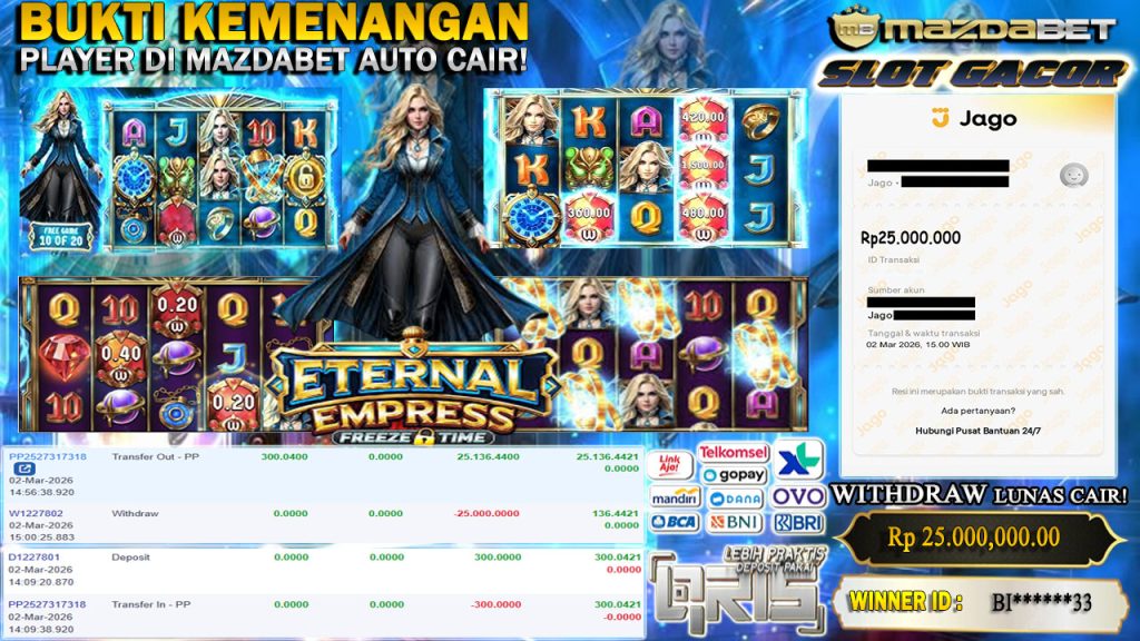 BUKTI KEMENANGAN DAN WITHDRAW 02 MARET 2026 Di Game Eternal Empress – Freeze Time WD 25 JUTA