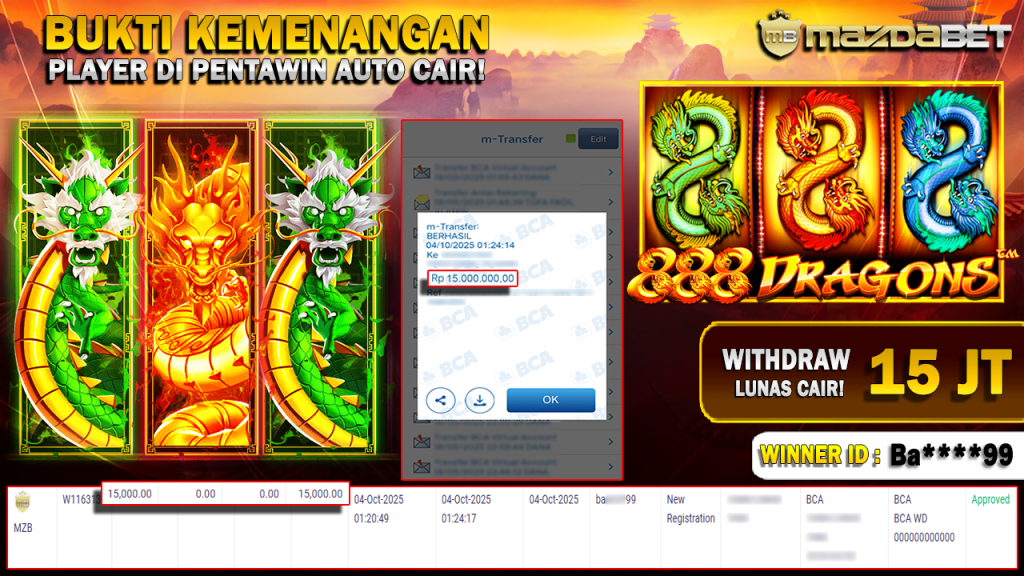 BUKTI KEMENANGAN DAN WITHDRAW 04 Oktober 2025 Di Game 888 Dragons WD 15 JUTA