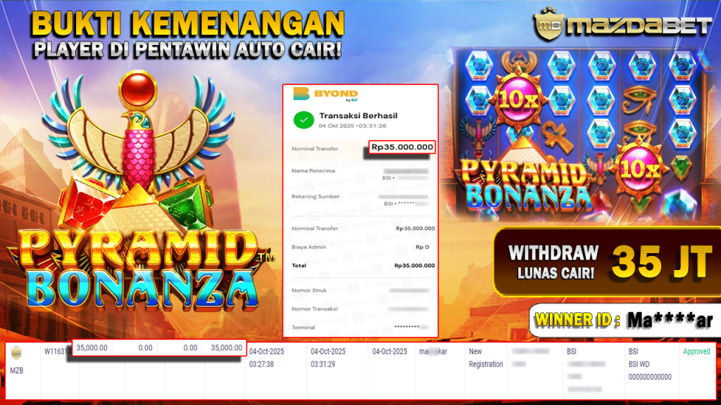 BUKTI KEMENANGAN DAN WITHDRAW 04 Oktober 2025 Di Game Pyramid Bonanza WD 35 JUTA