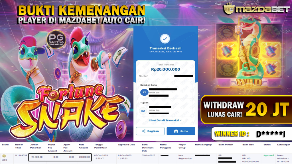BUKTI KEMENANGAN DAN WITHDRAW 05 Oktober 2025 Di Game Fortune Snake WD 20 JUTA