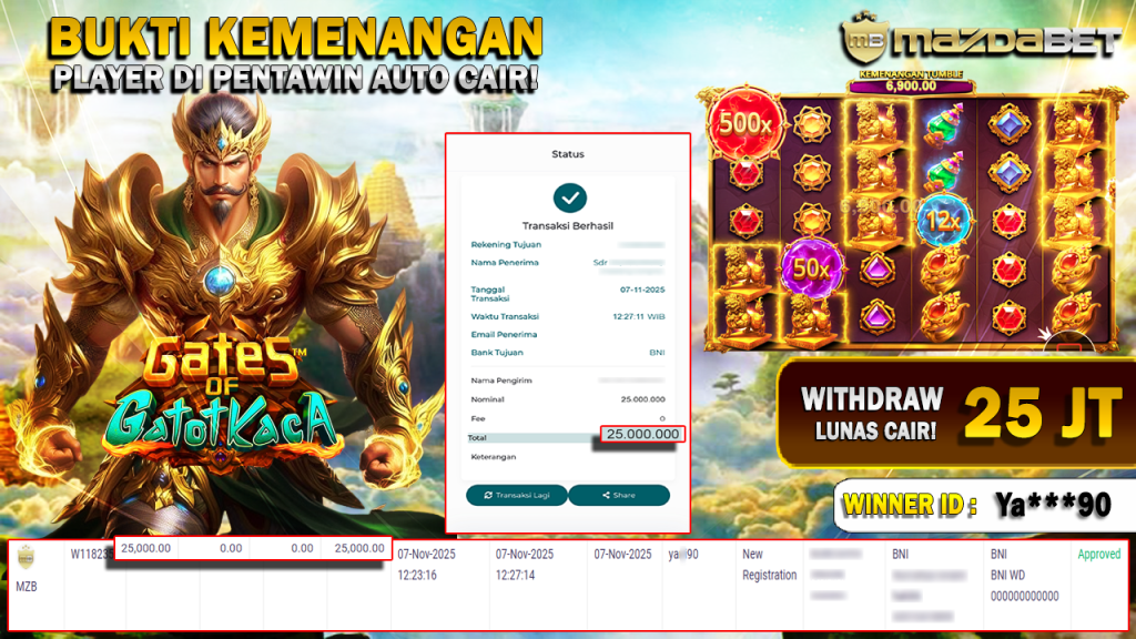 BUKTI KEMENANGAN DAN WITHDRAW 07 November 2025 Di Game Gates Of Gatotkaca Wd 25 JUTA