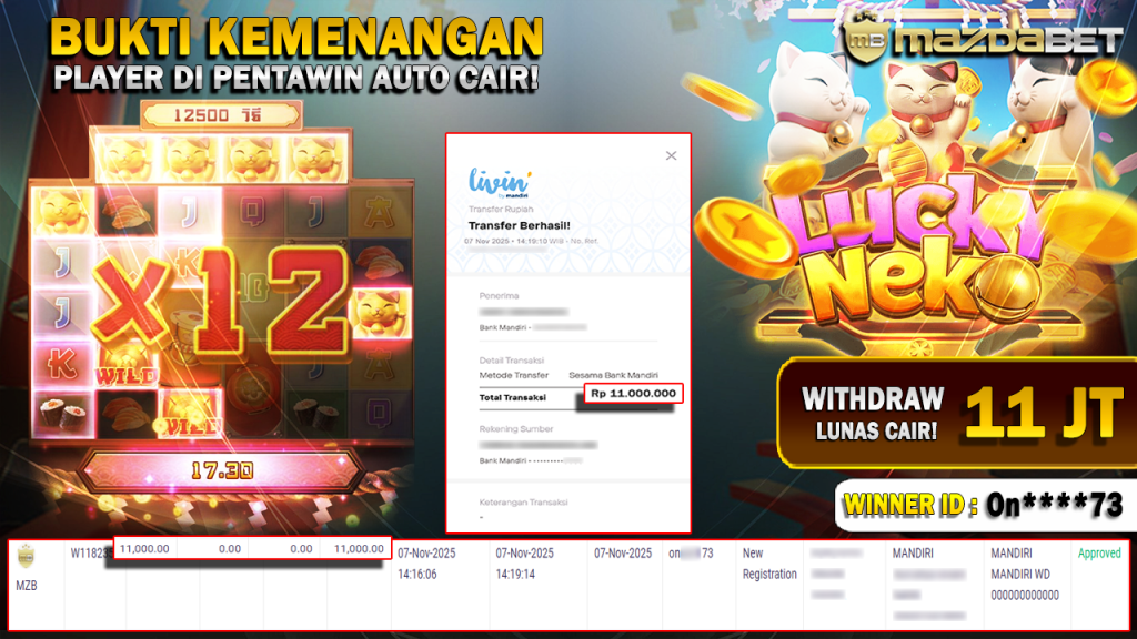 BUKTI KEMENANGAN DAN WITHDRAW 07 November 2025 Di Game Lucky Neko Wd 11 JUTA