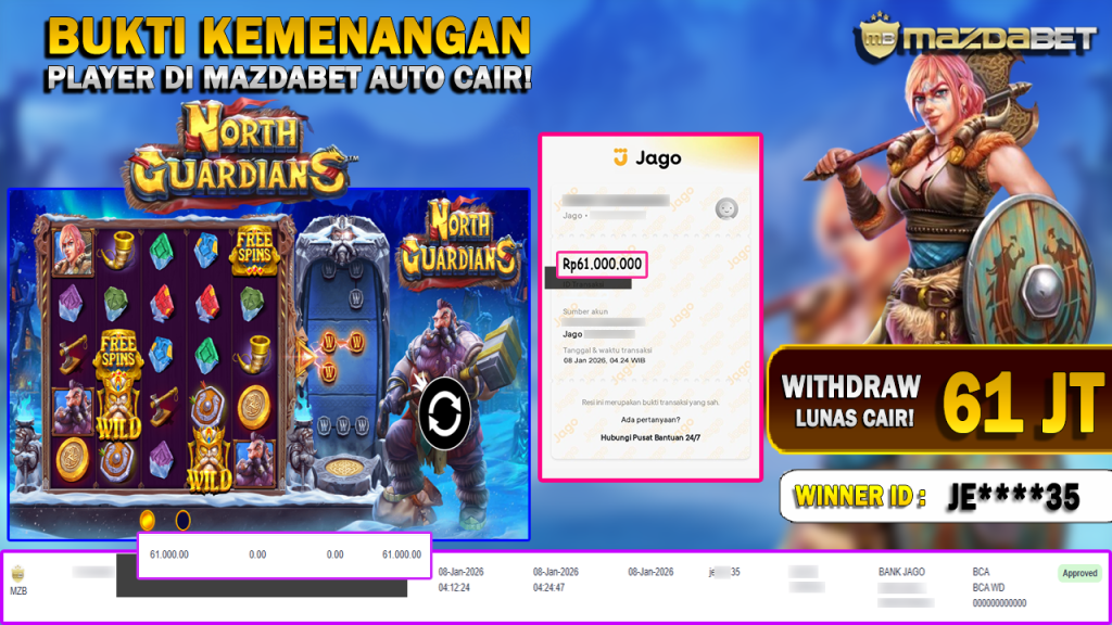 BUKTI KEMENANGAN DAN WITHDRAW 08 JANUARI 2026 Di Game North Guardians WD 61 JUTA