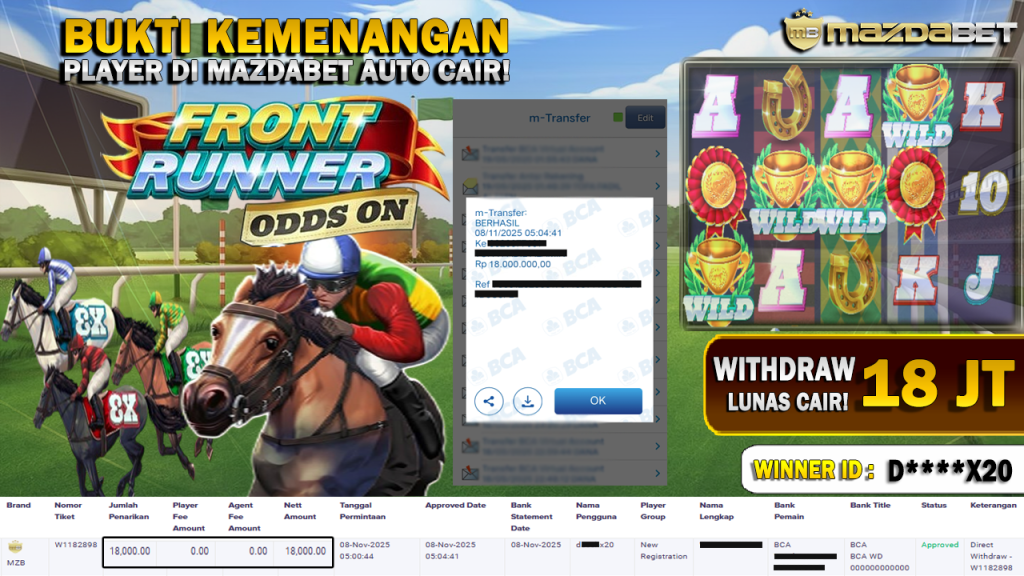 BUKTI KEMENANGAN DAN WITHDRAW 08 November 2025 Di Game Front Runner Odds On Wd 18 JUTA