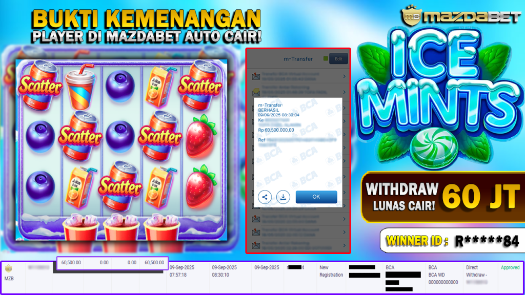Bukti Kemenangan Dan Withdraw 09 September 2025 Di Game ice mints WD 60 JUTA