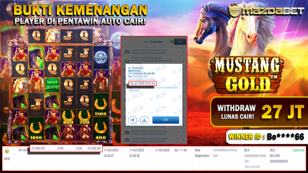 BUKTI KEMENANGAN DAN WITHDRAW 11 Oktober 2025 Di Game Mustang Gold WD 27 JUTA