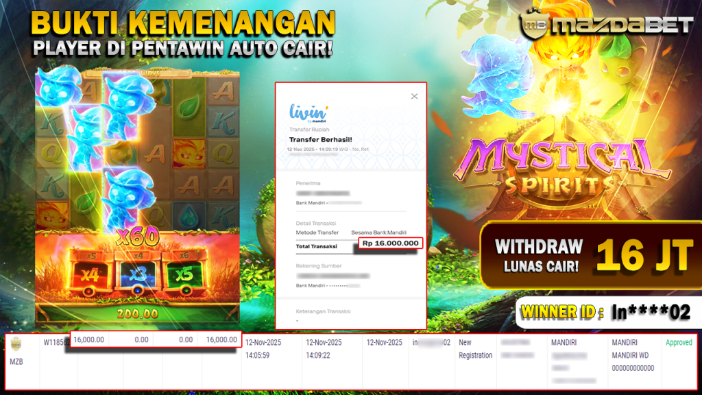 BUKTI KEMENANGAN DAN WITHDRAW 12 November 2025 Di Game Mystical Spirits WD 16 JUTA