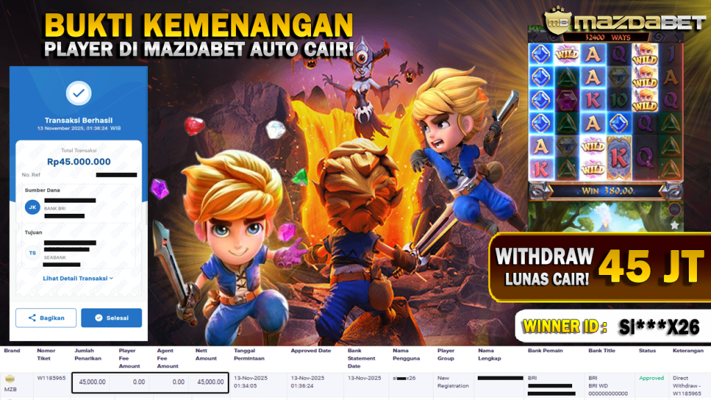 BUKTI KEMENANGAN DAN WITHDRAW 13 November 2025 Di Game Gem Saviour WD 45 JUTA