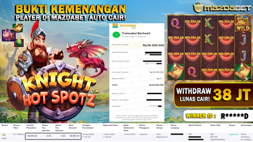 BUKTI KEMENANGAN DAN WITHDRAW 14 Oktober 2025 Di Game Knight Hot Spotz WD 38 JUTA