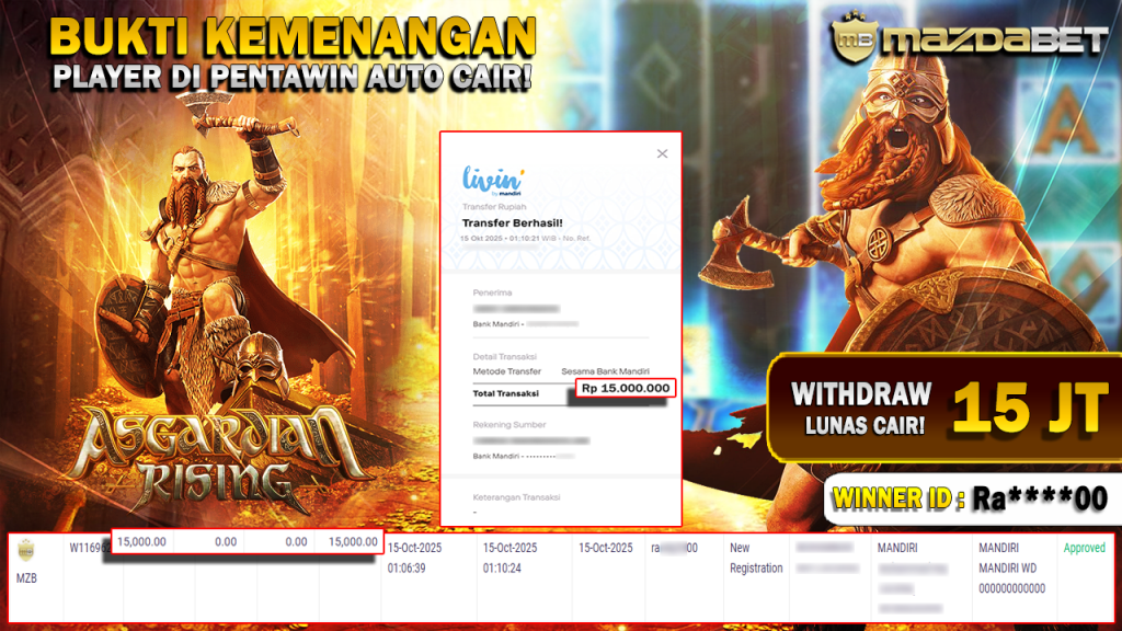 BUKTI KEMENANGAN DAN WITHDRAW 15 Oktober 2025 Di Game Asgardian Rising WD 15 JUTA