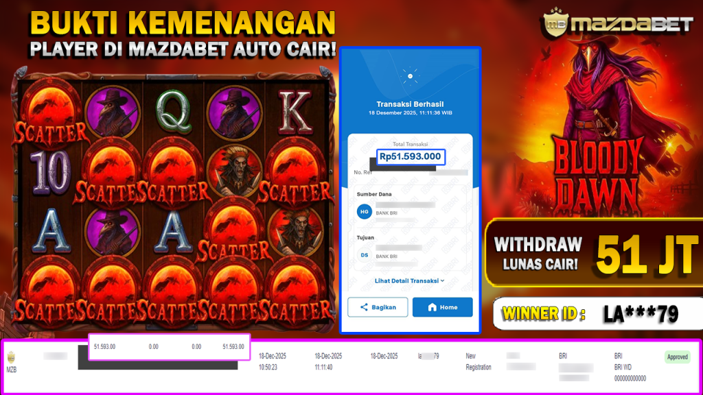 BUKTI KEMENANGAN DAN WITHDRAW 18 DESEMBER 2025 Di Game Bloody Dawn WD 51 JUTA