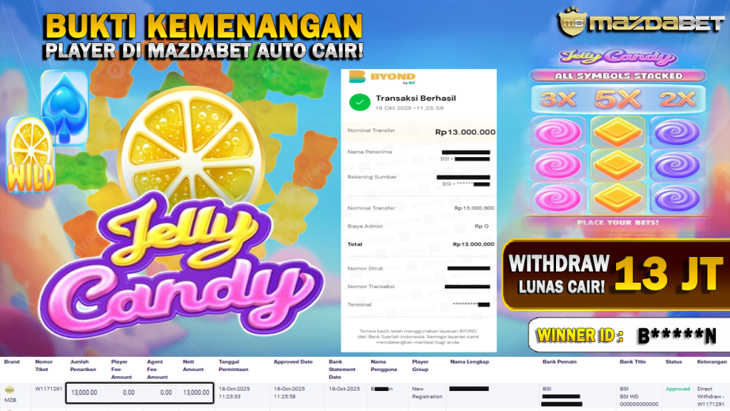 BUKTI KEMENANGAN DAN WITHDRAW 18 Oktober 2025 Di Game Jelly Candy Wd 13 JUTA