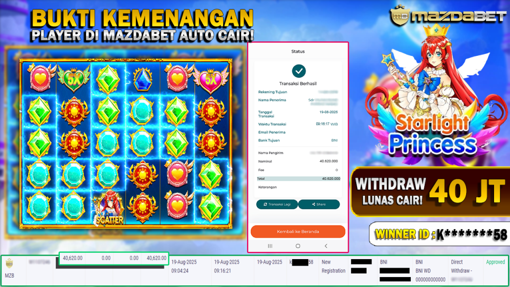 Bukti Kemenangan Dan Withdraw 19 AGUSTUS 2025 Di Game Starlight Princess WD 40 JUTA