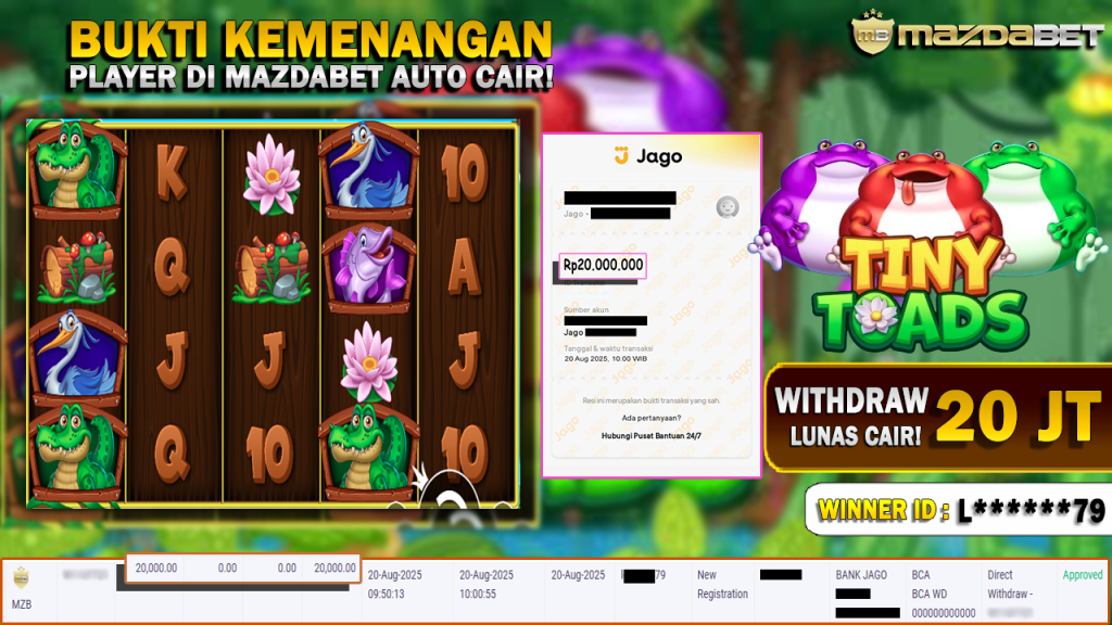 Bukti Kemenangan Dan Withdraw 20 AGUSTUS 2025 Di Game tiny toads WD 20 JUTA