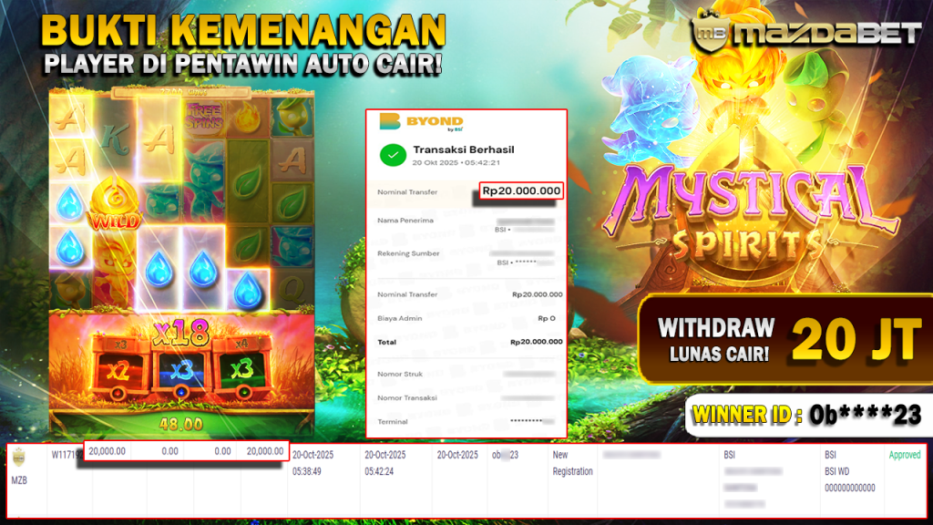 BUKTI KEMENANGAN DAN WITHDRAW 20 Oktober 2025 Di Game mystical Spirits Wd 20 JUTA