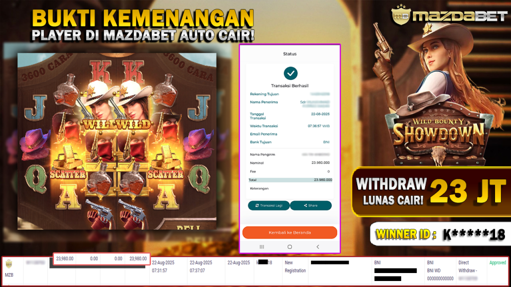 Bukti Kemenangan Dan Withdraw 22 AGUSTUS 2025 Di Game Wild Bounty Showdown WD 23 JUTA