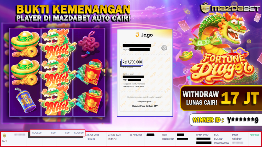 Bukti Kemenangan Dan Withdraw 23 AGUSTUS 2025 Di Game fortune dragon WD 17 JUTA