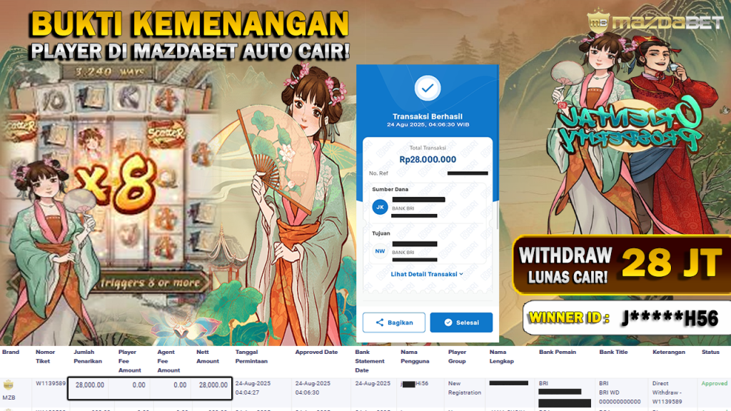 Bukti Kemenangan Dan Withdraw 24 AGUSTUS 2025 Di Game Oriental Prosperity WD 28 JUTA