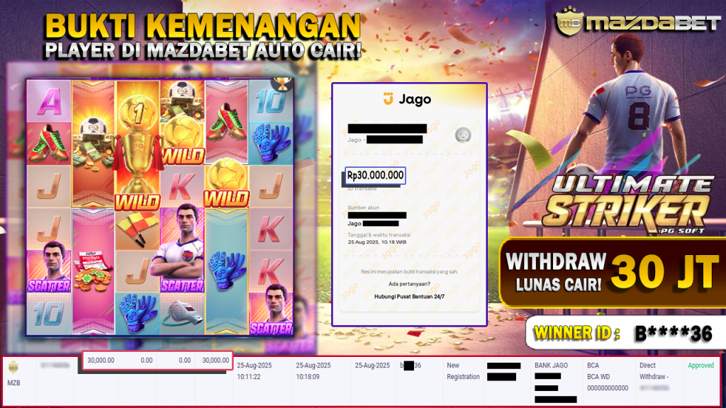 Bukti Kemenangan Dan Withdraw 25 AGUSTUS 2025 Di Game Ultimate Striker WD 30 JUTA