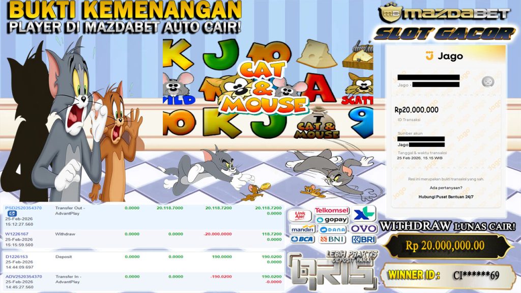 BUKTI KEMENANGAN DAN WITHDRAW 25 FEBRUARI 2026 Di Game Cat & Mouse WD 20 JUTA