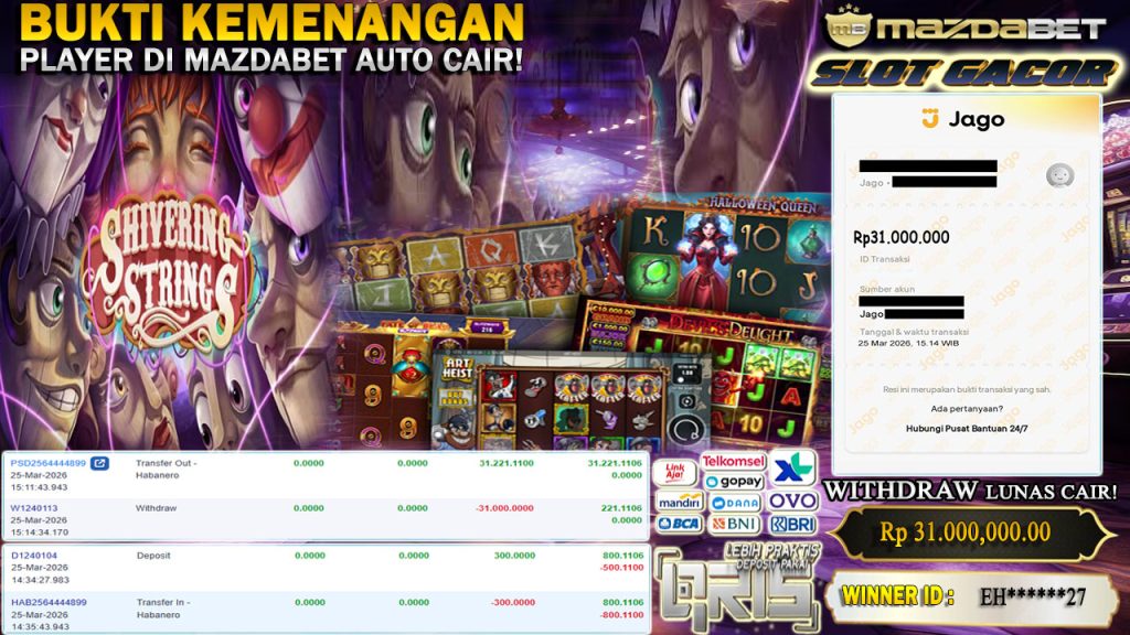 BUKTI KEMENANGAN DAN WITHDRAW 25 MARET 2026 Di Game Shivering Strings ( Habanero ) WD 31 JUTA