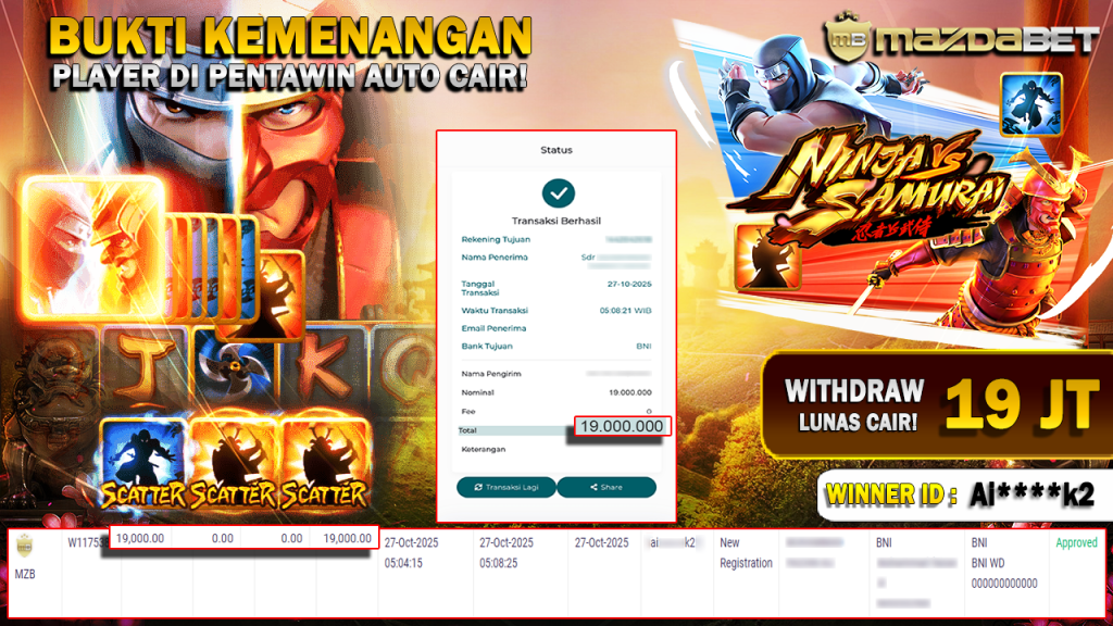 BUKTI KEMENANGAN DAN WITHDRAW 27 Oktober 2025 Di Game Ninja Vs Samurai Wd 19 JUTA