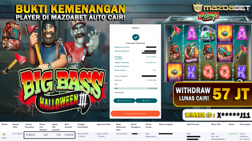BUKTI KEMENANGAN DAN WITHDRAW 28 Oktober 2025 Di Game Big Bass Halloween 3 Wd 57 JUTA