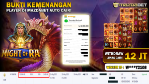 Bukti Kemenangan Dan Withdraw 23 MEI 2025 Di Game Might of Ra 12 Juta