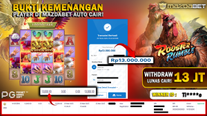 Bukti Kemenangan Dan Withdraw 25 Maret 2025 Di Game Rooster Rumble PG Soft WD 13 Juta